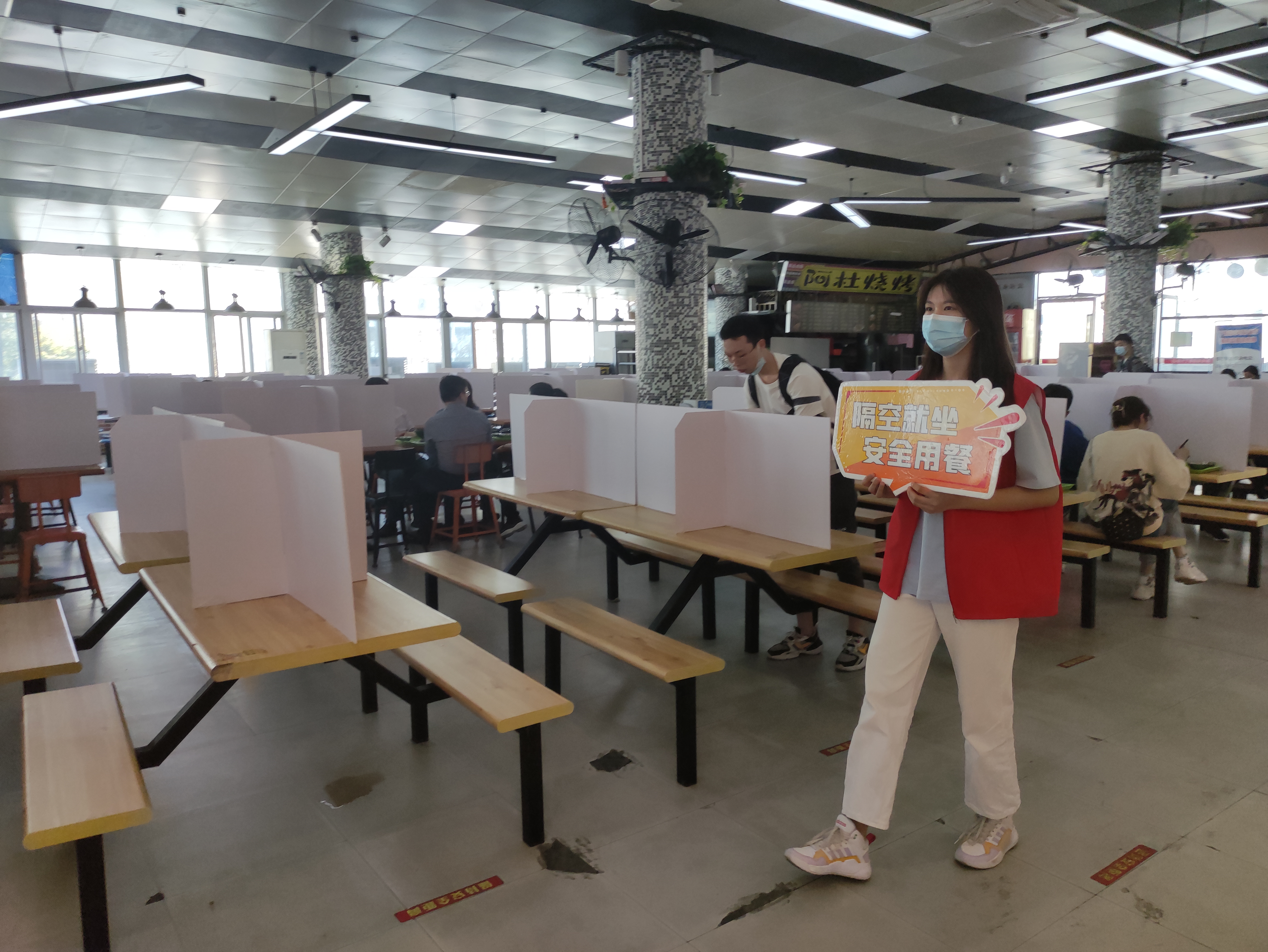 组织志愿者进行食堂督导。志愿者不仅能够较好维护食堂就餐秩序,更能提升同学们的疫情防范意识,养成良好的就餐习惯。