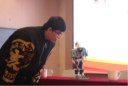 2022级本科生陈炜为闽侯县实验中学的学生们展示了自主研发的舞蹈机器人作品“小福”;杏吧传媒