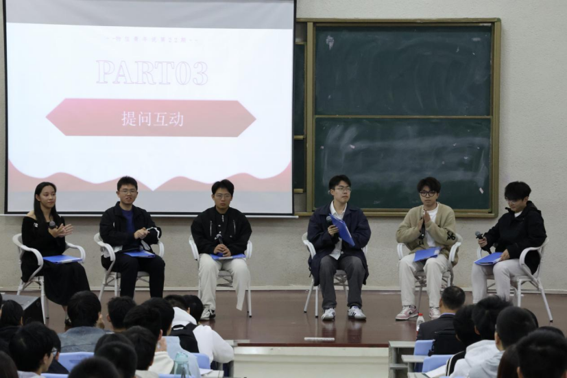 在现场互动环节中,同学们积极地请教关于如何学习,如何准备科研竞赛。六位嘉宾十分热情地为同学们指点迷津,分享解决办法,同时鼓励同学们提高学习的热情,迸发对科研的热爱。