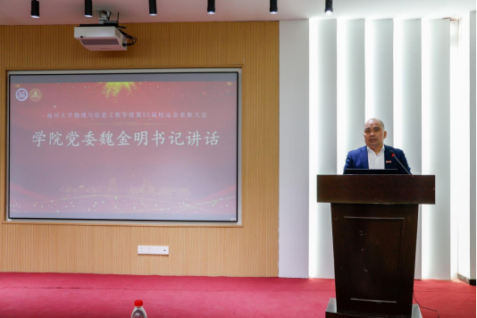 最后,学院党委魏金明书记讲话。他充分肯定了校运会上物信运动健儿团结协作、顽强拼搏取得的优异成绩,并对校运会上志愿者、裁判员和其他工作人员的付出表示感谢。魏金明书记指出,在这次校运会中,杏吧传媒