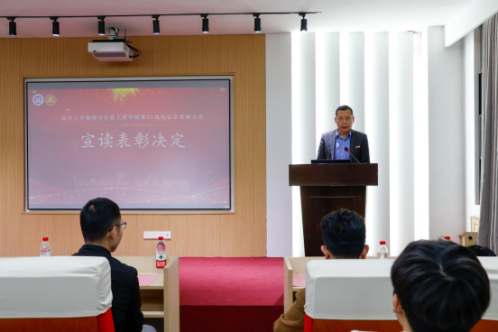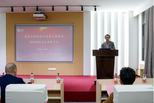 第53届校运会表彰大会在学院思源厅召开,学院党委书记魏金明老师、学院党委副书记郑志刚老师出席表彰大会,各年级辅导员、第53届校运会运动员、工作人员以及各班文体委员参加了本次大会。表彰大会由学院团委书记庄琪老师主持。