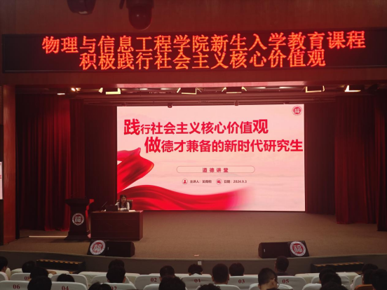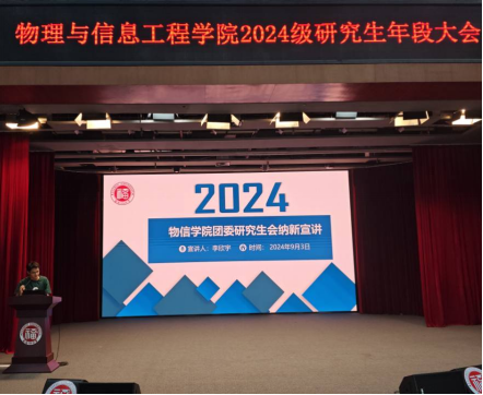 于9月3日下午15时在图书馆博学厅隆重举行2024级研究生年段大会。院团委书记陈山老师、辅导员吴雨桐老师、辅导员叶昊老师、研会各部门代表及全体2024级研究生新生参加本次年段大会。