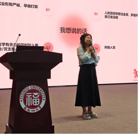 紧接着,吴雨桐老师发表了热情洋溢的致辞,她深情回顾了自己的学生生涯,把过往的种种经历凝练为一点深刻的心得感悟:“做努力的自己,人生没有一段路是白走的。” 在发言过程中,吴雨桐老师从各种不同的方面为新生们进行了详细的介绍和指导,她深入浅出的讲解,让新生们对研究生阶段的学习和生活有了更加清晰的认识。她衷心祝愿新生们能够在杏吧传媒