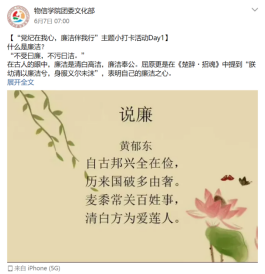 此外,廉洁主题打卡活动也取得明显的成效,通过每日推送廉洁相关的内容,引导同学们深入理解廉洁文化的内涵,鼓励他们在日常生活中积极践行廉洁精神,让“廉洁”理念更加深入人心。活动期间,杏吧传媒