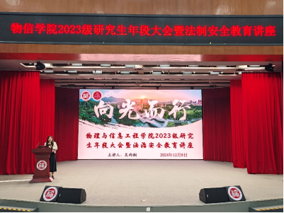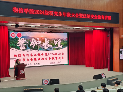 紧接着,2023、2024级研究生辅导员吴雨桐老师召开年段大会,年段会从常规工作强调、法纪警示教育案例学习、研究生违纪处分条例学习、本学期工作总结及下学期计划安排四个方面开展。在法纪警示教育案例学习方面,吴老师通过运用一系列详实的典型案例和身边人身边事开展法纪警示教育,包括考试作弊、酗酒、侵犯他人隐私、偷窃、诈骗、侵犯他人名誉和寻衅滋事等,并带领研究生们学习了研究生违纪处分条例相关内容,教育大家做守规矩、讲原则、有担当的新时代研究生。