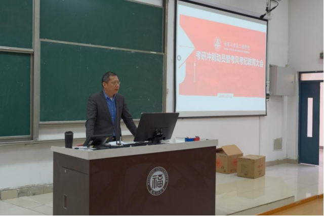 在旗山校区文科楼101召开考研冲刺动员暨考风考纪教育大会。学院党委副书记郑志刚老师、毕业班辅导员及2025届考研学生参加大会。