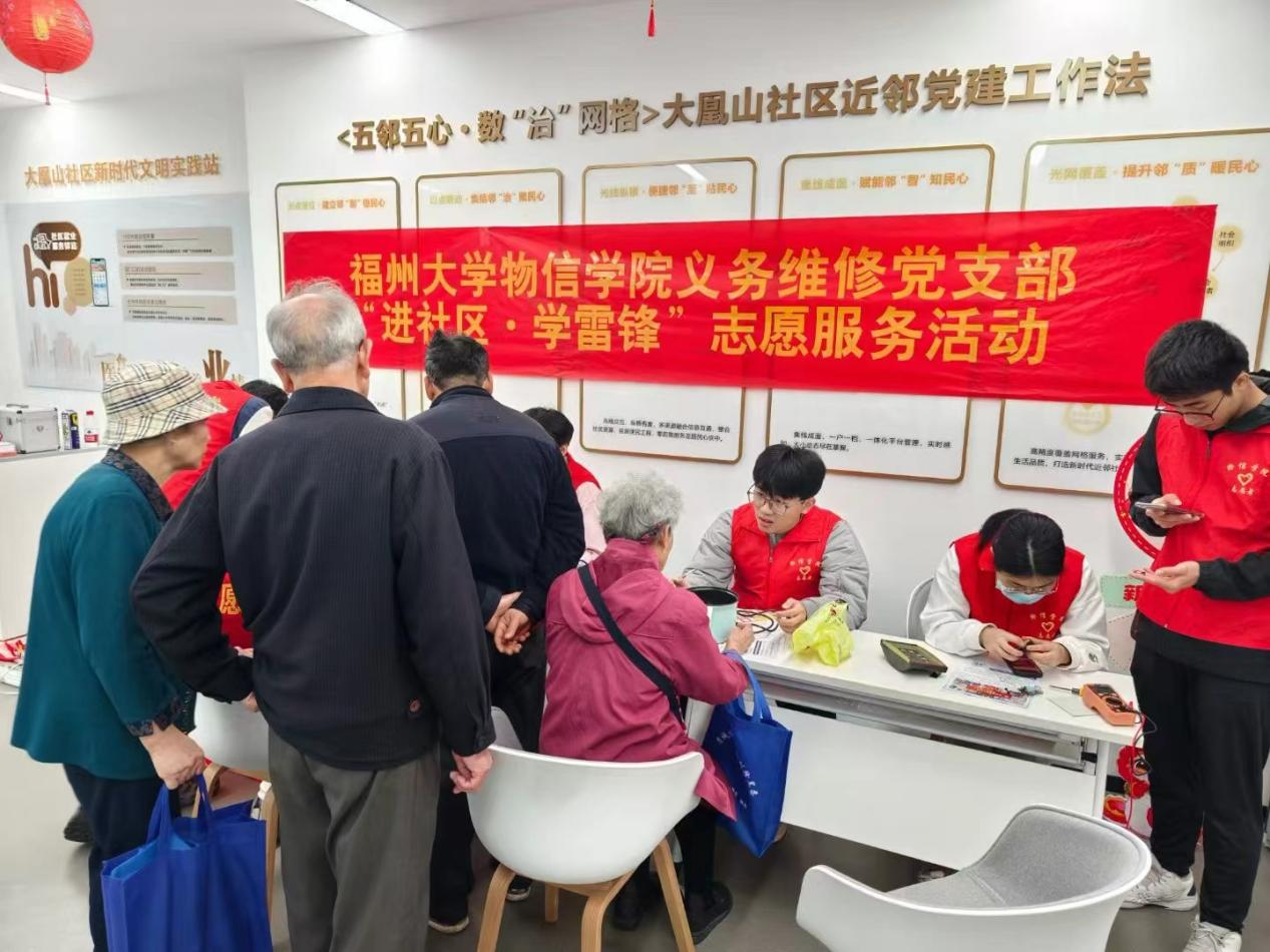 义务维修党支部深入福州市鼓楼区树兜社区、大凰山社区开展“进社区·学雷锋”志愿服务活动,以实际行动传递雷锋精神,为社区居民送去温暖与便利。