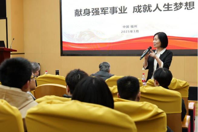 在致辞环节,陈少平研究员指出部队文职干部是国防和军队建设的重要力量,为青年学子提供了实现个人价值与报效国家的广阔平台。本次宣讲会不仅是一次政策解读会,更是一次生动的爱国主义教育课,他希望同学们能够抓住机遇,积极投身国防事业,在军队的广阔舞台上实现人生价值。