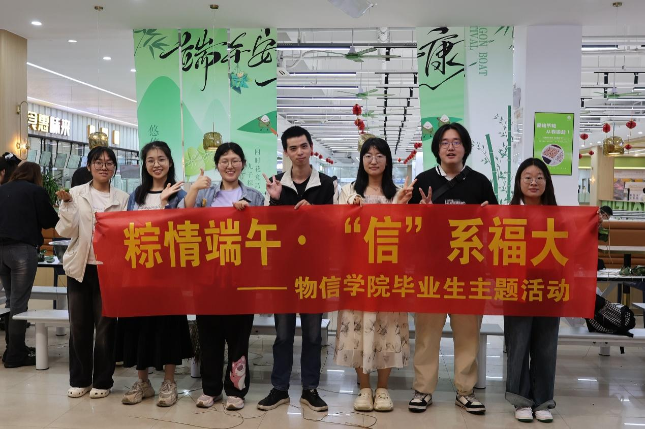 在校园内开展了一场别开生面的毕业生端午节主题活动,众多物信师生齐聚一堂,在粽香中感受传统节日的魅力,为母校生活留下温馨回忆。