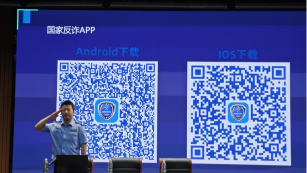林警官从网络态势特征、网络安全法、网络乱象、违法VPN 工具及意识形态工作五个维度,结合前沿分析与鲜活案例,为新生上了一堂生动的法治课,让同学们深刻认识到依法治理网络空间的重要性。网络安全与信息化,一体之两翼、驱动之双轮。没有网络安全就没有国家安全,会上林警官为大家深入剖析网络空间的法律边界,提醒大家在享受网络便利的同时,要时刻绷紧法律之弦,不触碰违法违规的红线,共同维护风清气正的网络环境。同时,还重点介绍了“国家反诈APP”,现场展示了安卓和iOS系统的下载二维码。这款APP能有效预警诈骗信息、识别诈骗电话,是守护我们财产安全的 “利器”。