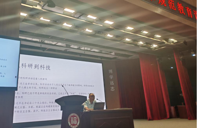 在旗山校区图书馆博学厅成功举办研究生新生入学教育系列课程之“科学道德与学术规范”专题讲座。本次讲座特邀学院副院长、福建省百人计划专家、省科技创新领军人才、闽江学者特聘教授李福山老师担任主讲人,2025级全体硕士研究生共400余人参与聆听。