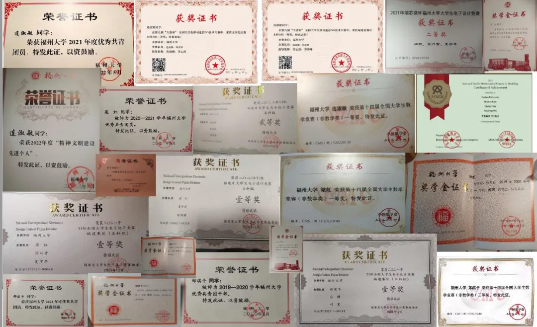 TI杯全国大学生电子设计竞赛福建赛区一等奖、二等奖、三等奖;