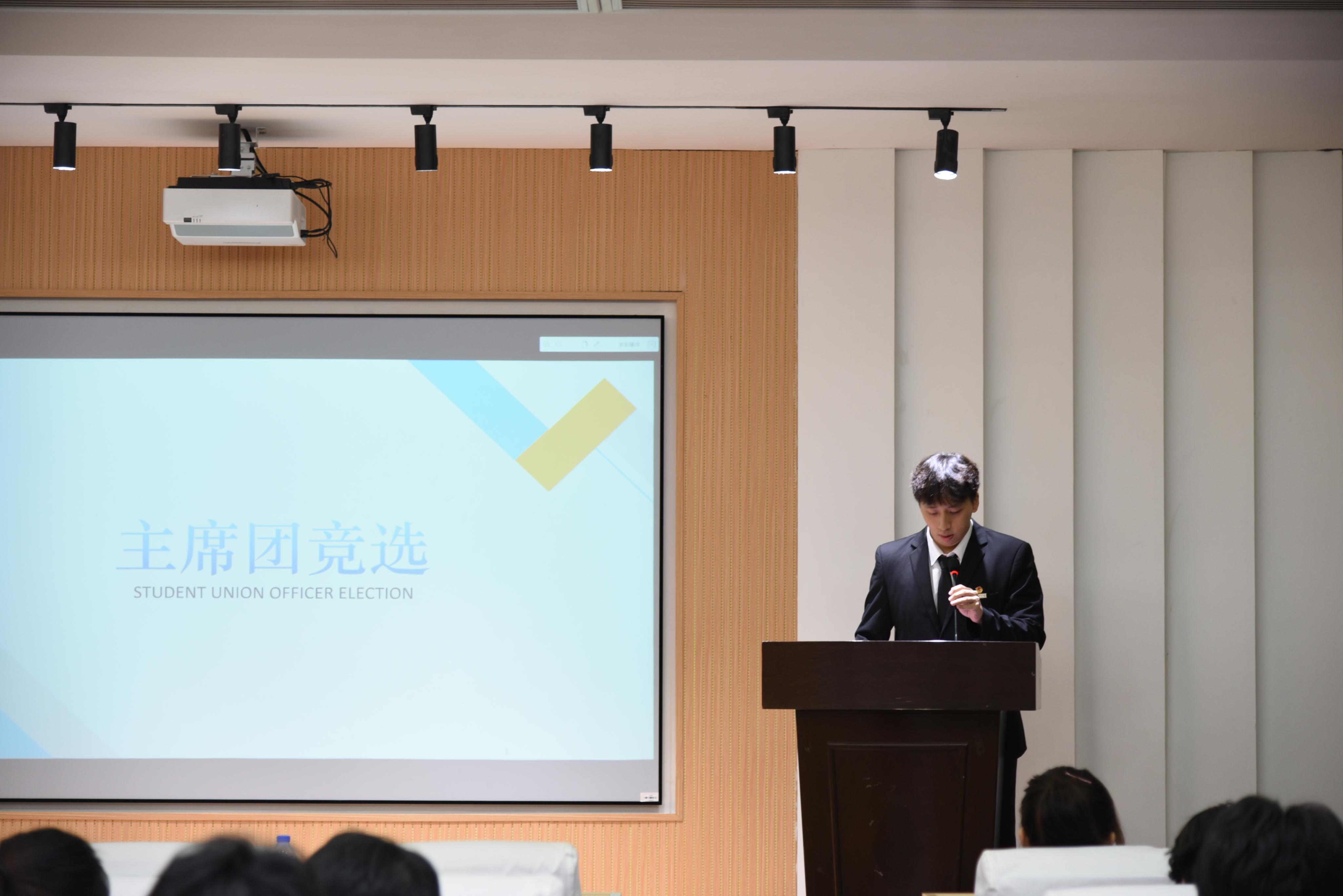 思源厅顺利召开。出席本次大会的有院党委副书记郑志刚老师、院团委书记陈山老师、院团委副书记苏海姬老师、校学生会主席团成员林嘉敏同学,以及杏吧传媒