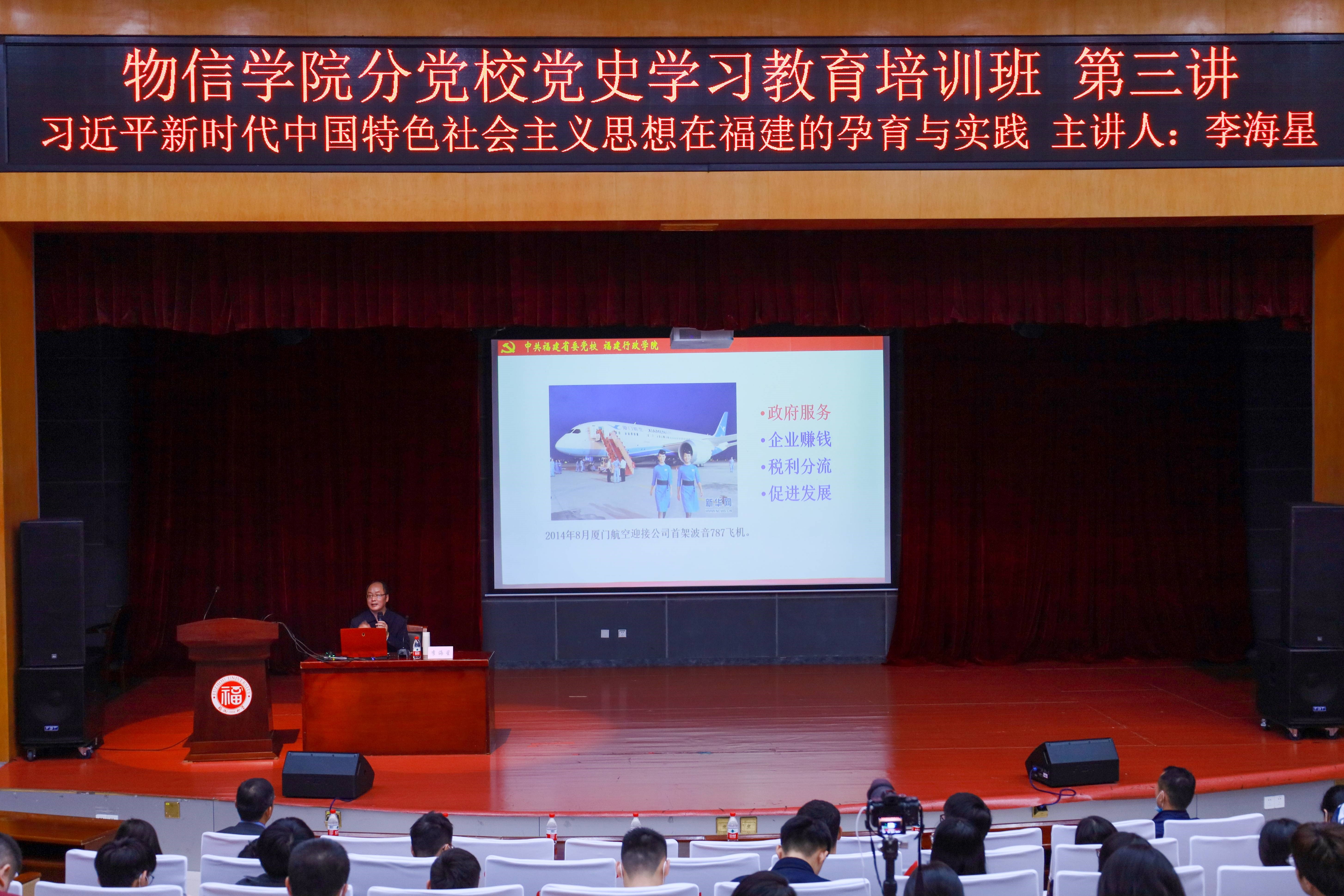 党委党史学习教育培训班第3讲暨分党校第34期发展对象培训班第一讲在图书馆明德厅成功举行。本次培训班邀请福建省委党校马克思主义研究院副院长李海星教授为190名师生党员和48名发展对象作《习近平新时代中国特色社会主义思想在福建的孕育与实践》专题辅导报告。学院党委郑志刚副书记主持了报告会。