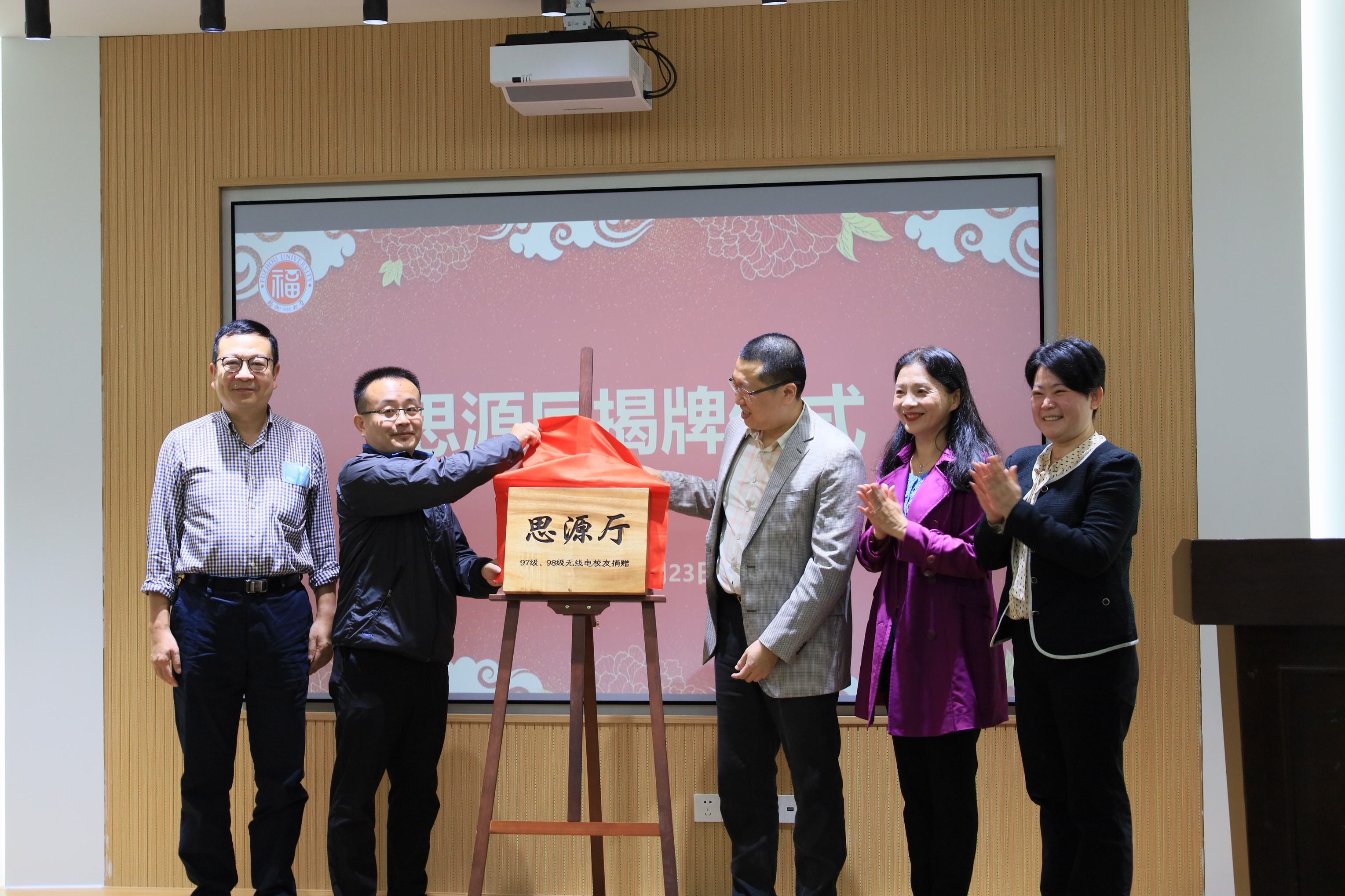 最后,在大家的热切期待下,由程玉敏会长、张红书记、校友毛永泉先生、黄国政先生上台共同为思源厅揭牌。揭牌仪式在大家热烈的掌声中圆满结束。