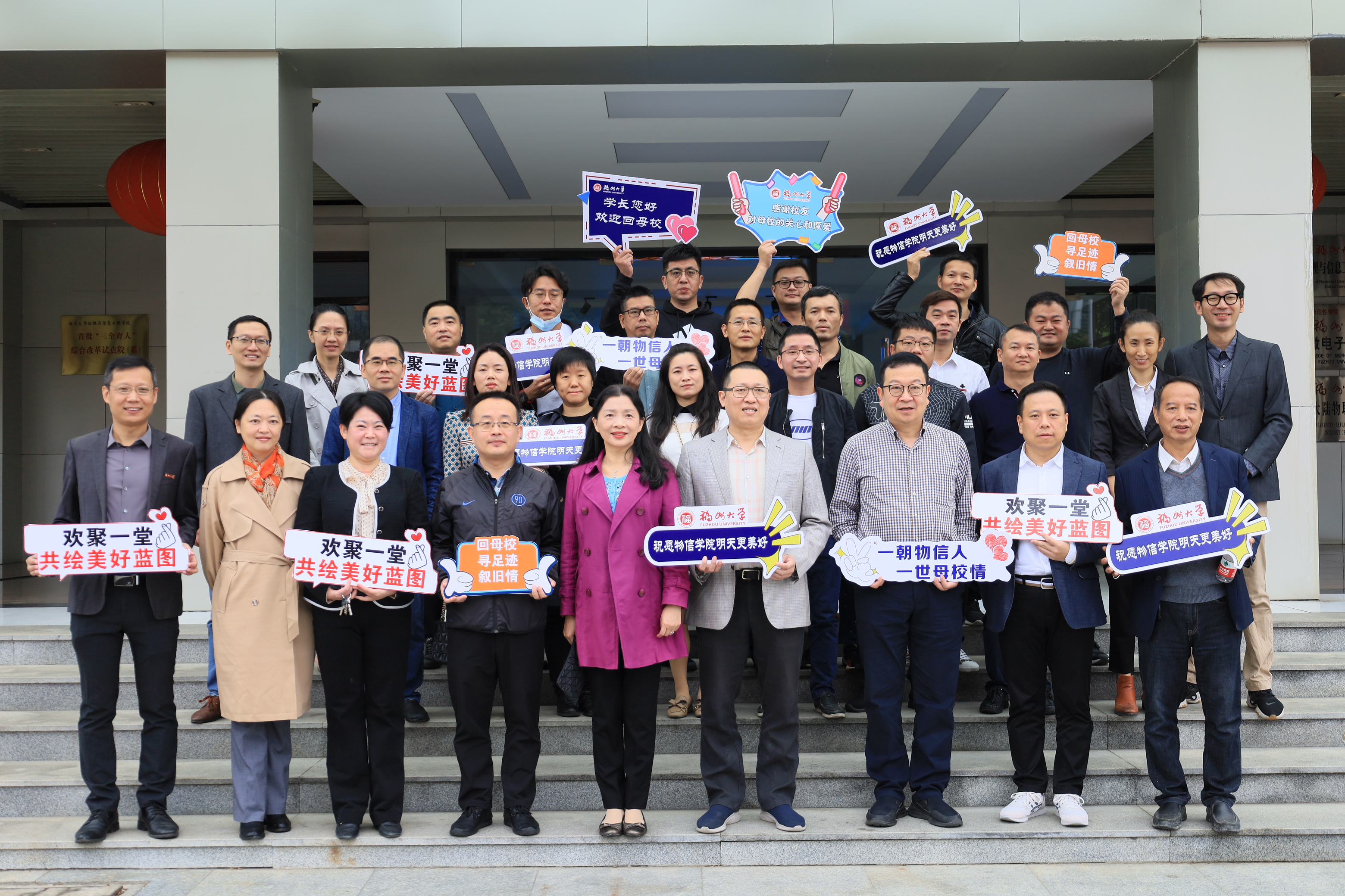 仪式后,出席此次揭牌仪式的领导嘉宾以及校友们到学院门口共同合影留念。随后,在学院二楼祥联厅举行了校友返校座谈会。