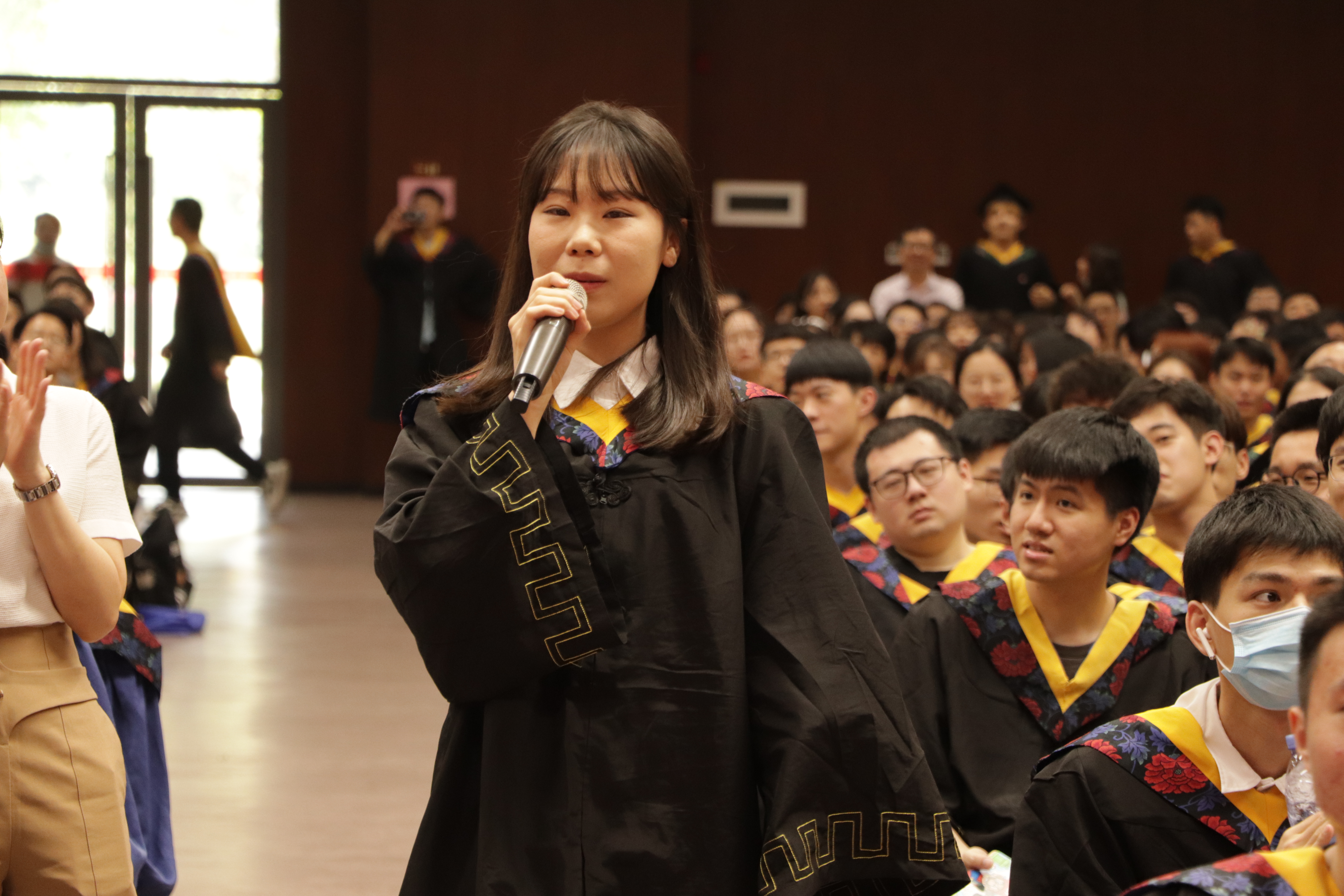 典礼的第四篇章“踏锦程:志怀四方,乘风破浪”,播放了学院党委书记、各系主任、年级辅导员以及团委学生会学生精心录制的毕业祝福视频《我想对你说》,随后毕业生们合唱《一生有你》,用歌声致敬青春,话别一路并肩同行的同学与老师。