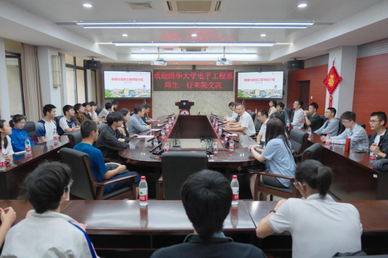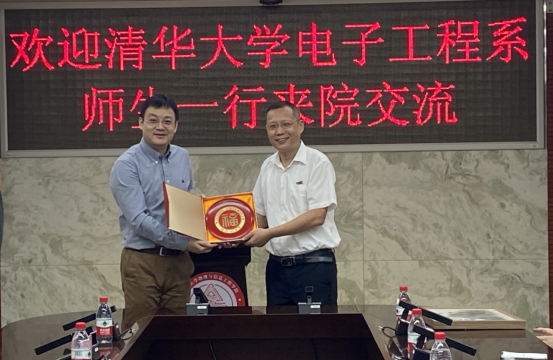随后,清华大学电子工程系师生物理参观了信息工程学院院史长廊,了解学院发展历程、各发展阶段突出成果、教学改革和学科建设成就等。并于祥联厅会议室召开师生交流座谈会,座谈会上,学院郑志刚副书记对清华大学师生的到访表示热烈的欢迎,并从学科布局、专业建设、师资队伍、学生竞赛、科研成果等方面详细介绍了学院发展情况;清华大学电子工程系汪莱副主任介绍了此次因材施教计划光电子方向项目的基本情况,他表示此行的目的主要是帮助学生拓展学术志趣,培养学生科研能力。随后,双方师生就学科发展、教学经验、科研成果等话题展开深入讨论。