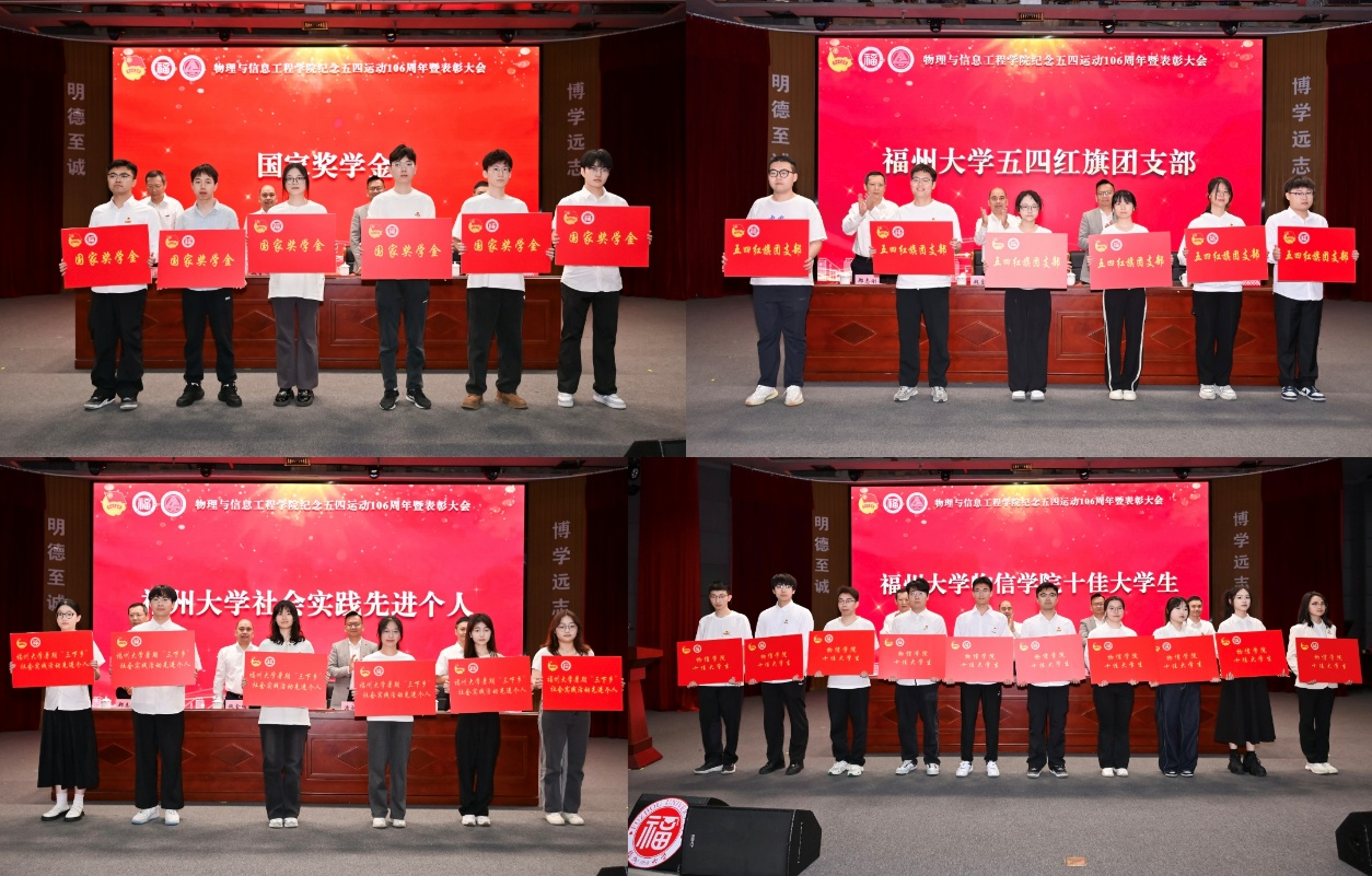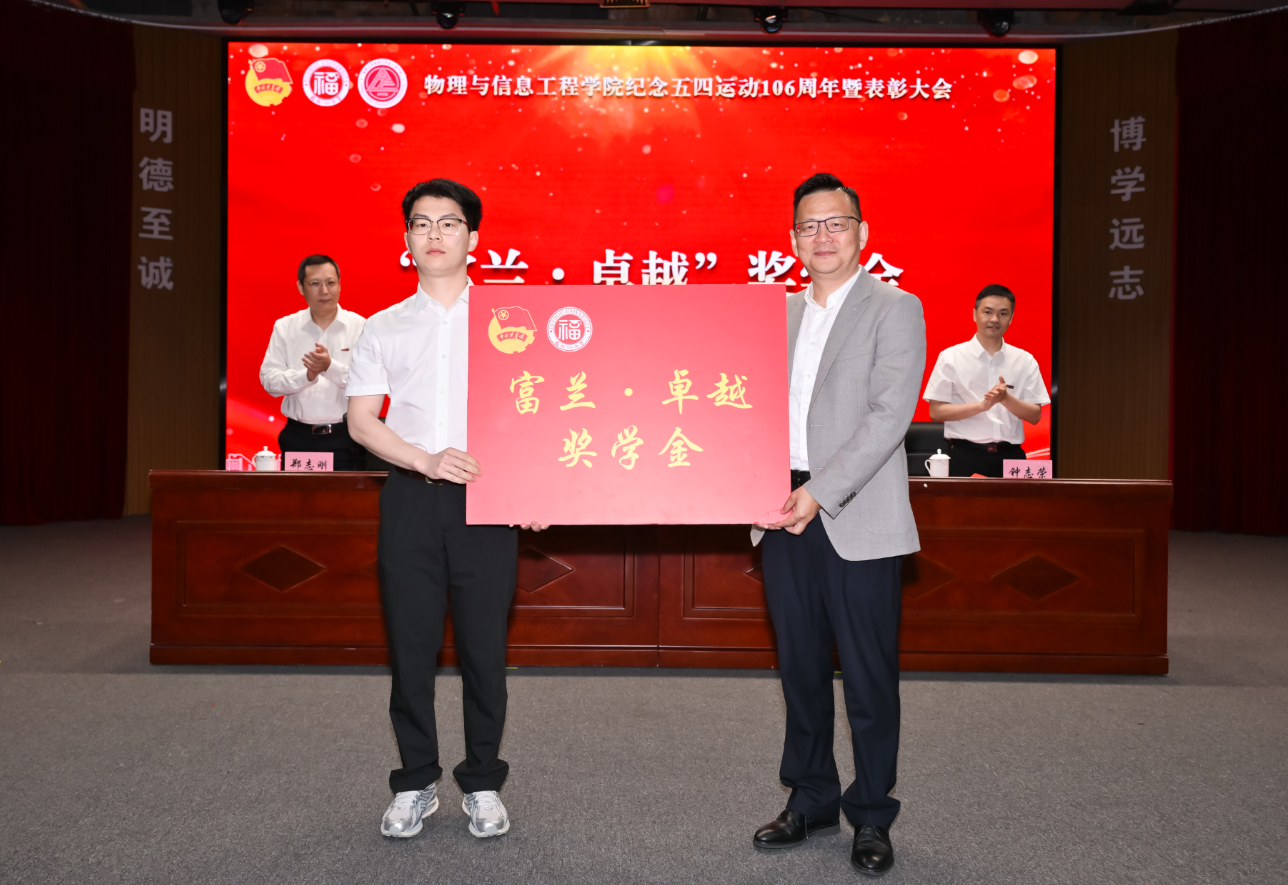 纪念五四运动106周年暨表彰大会在旗山校区图书馆博学厅隆重举行。学院党委书记魏金明、党委副书记郑志刚、副院长钟志荣、福建富兰光学股份有限公司董事长潘敏忠以及学院师生代表500余人参加了大会。会议由学院党委郑志刚副书记主持。