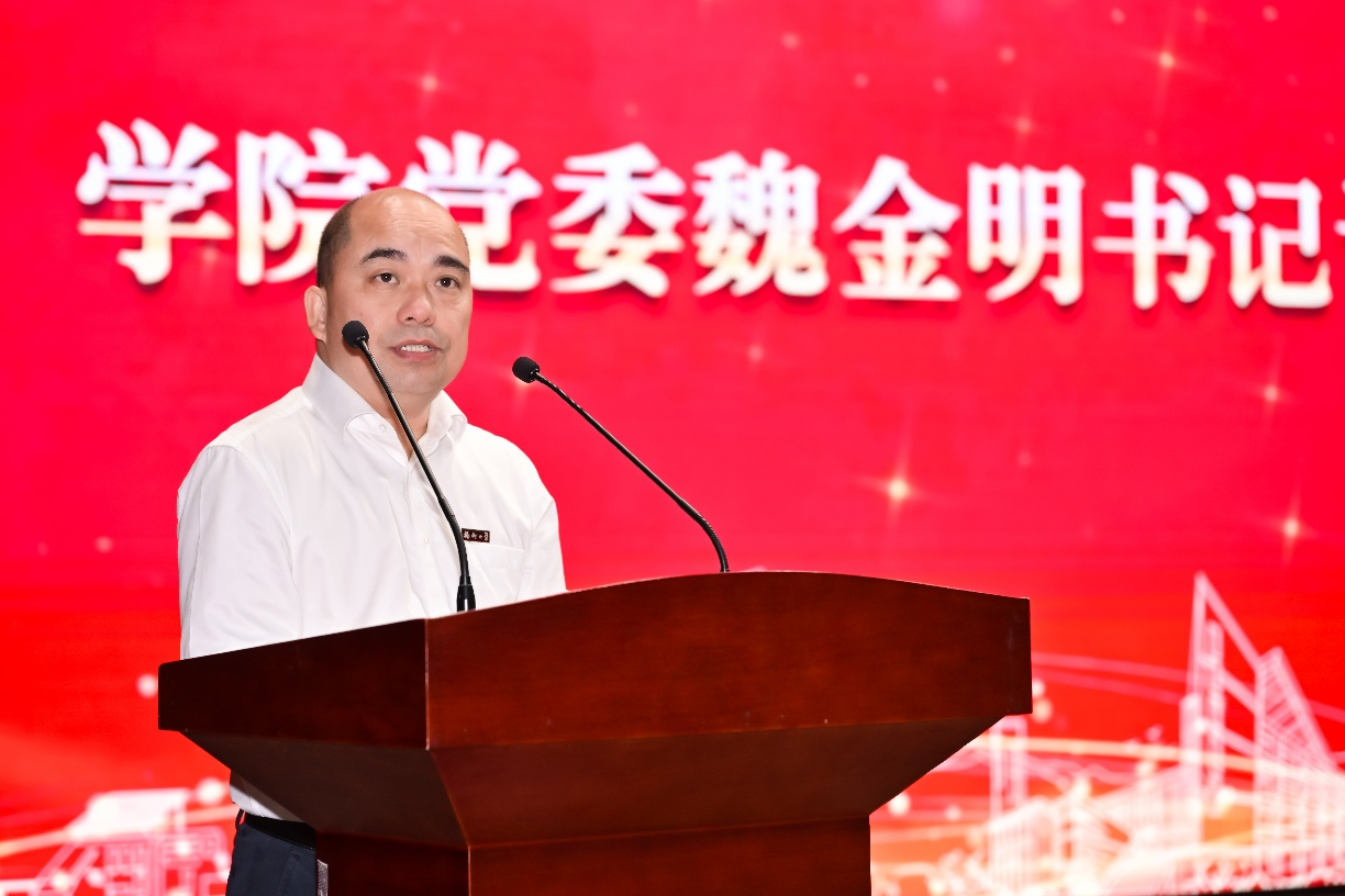 学院党委魏金明书记代表院党委向全院各级团学组织和青年朋友们致以节日的祝福和诚挚的问候,向受到表彰的集体和个人表示热烈的祝贺。他表示,过去一年,学院各级团学组织和广大青年师生深入学习贯彻习近平新时代中国特色社会主义思想,以实际行动践行习近平总书记对广大青年提出的殷殷嘱托,为“新一代信息技术双一流学科群”培育建设贡献青春力量,成绩斐然。魏金明书记对全院广大青年提出四点希望:一是要坚定理想信念,筑牢信仰之基;二是要厚植家国情怀,激发使命担当;三是要勤奋刻苦学习,练就过硬本领;四是要发扬奋斗精神,勇于开拓创新。