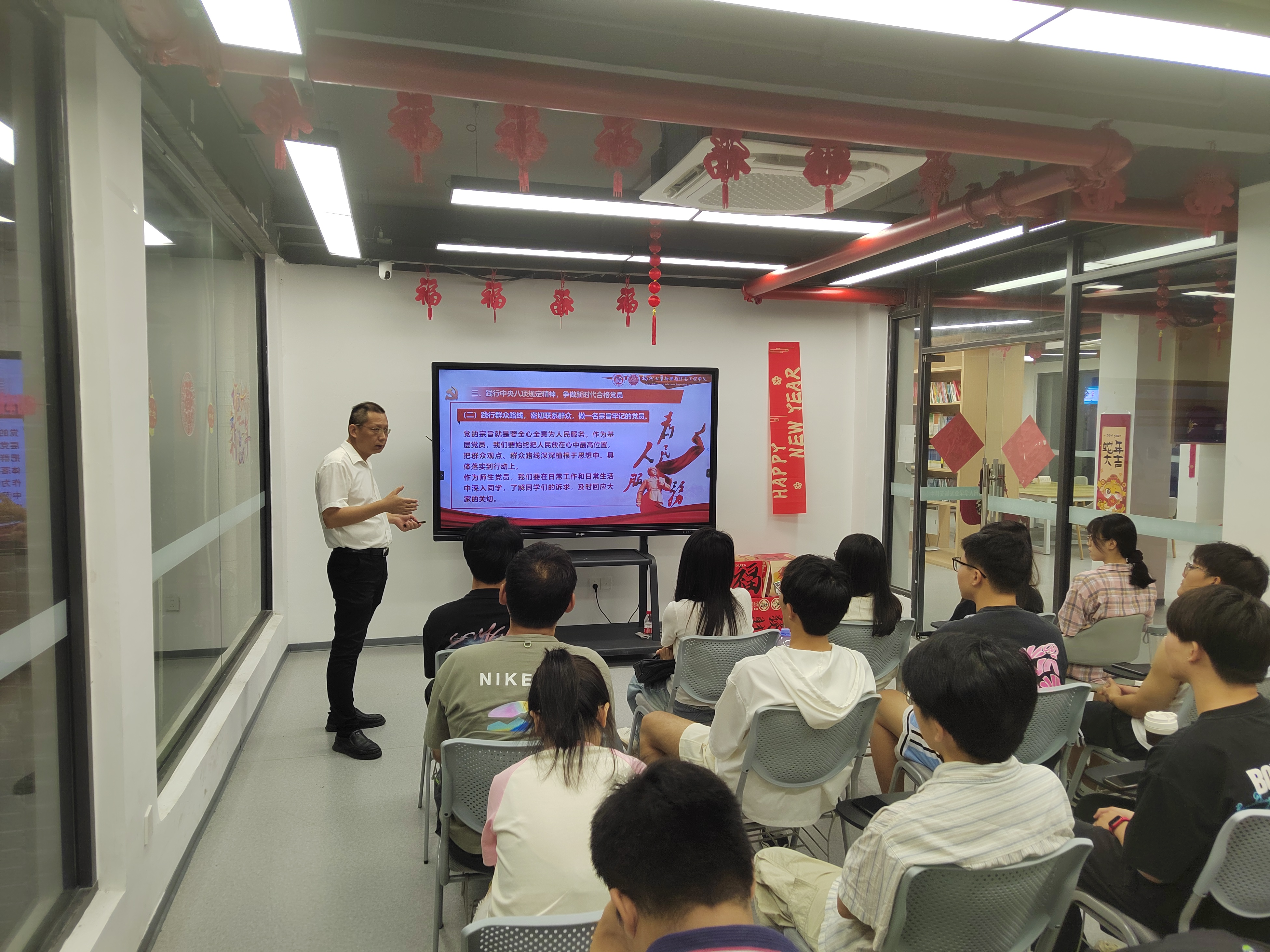 为深入贯彻中央八项规定精神学习教育,6月13日晚上,杏吧传媒 党委副书记郑志刚以“践行中央八项规定精神,争做新时代合格党员”为主题,在16#一站式大厅为学生党员带来了一场生动的专题党课。