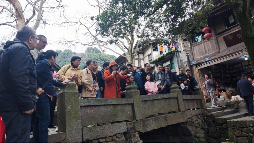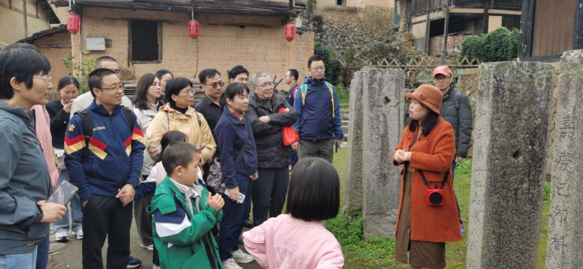 中午,老师们抵达桂峰村。漫步在桂峰村,映入眼帘的皆是古色古香的景致。老的树木苍翠挺拔,历史悠久的古道蜿蜒曲折,承载着岁月痕迹的古碑与古石刻静静伫立,每一砖一瓦都透露着数百年的历史沉淀。老师们还一同参观了蔡氏宗祠,全祠用80根巨大杉木柱子构建,宽枋大梁,不用一钉一铁,全部用榫卯镶嵌而成,极富特色。