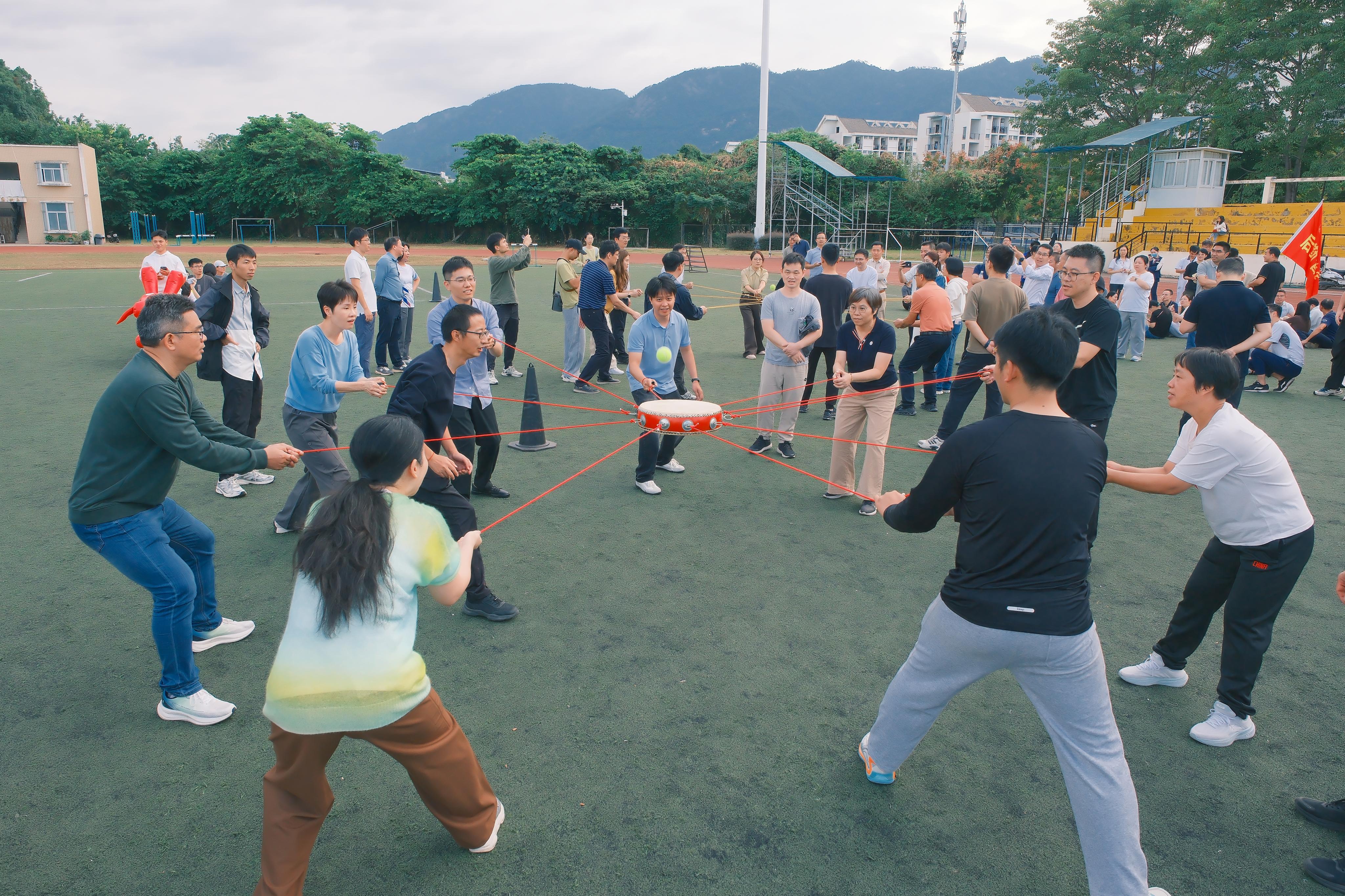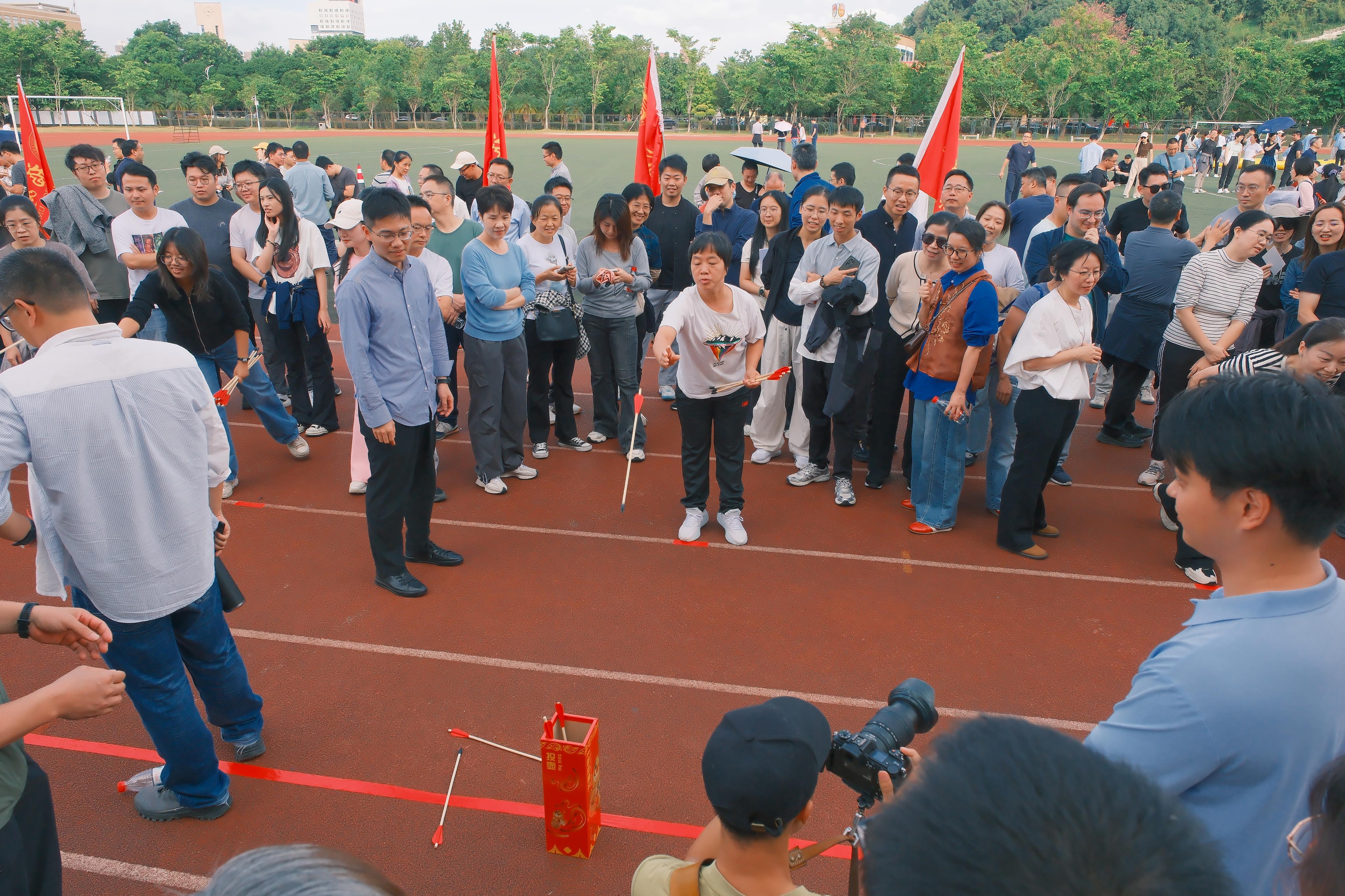 教职工们先后参加了投壶比赛、同心击鼓、提绳踏板和龙行天下四个项目。在投壶比赛中,队员们全神贯注,精准投掷;同心击鼓项目则需要高度默契,杏吧传媒