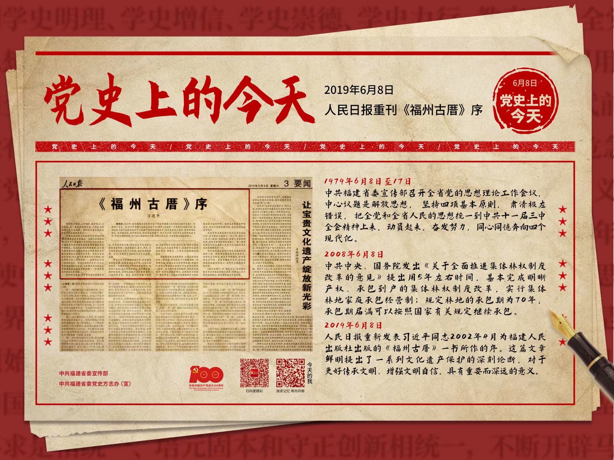 党史上的今天 | 6月8日2019年6月8日,人民日报重刊《福州古厝》序。