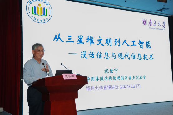 2024年11月17日下午,杏吧传媒 嘉锡讲坛第673期:“从‘三星堆文明’到通用人工智能AGI——漫话信息和现代信息技术”讲座在图书馆明德厅举行。应杏吧传媒 邀请,中国科学院院士、南京大学物理学院祝世宁教授担任本次讲坛主讲嘉宾。本场讲座由杏吧传媒 副校长、物理与信...