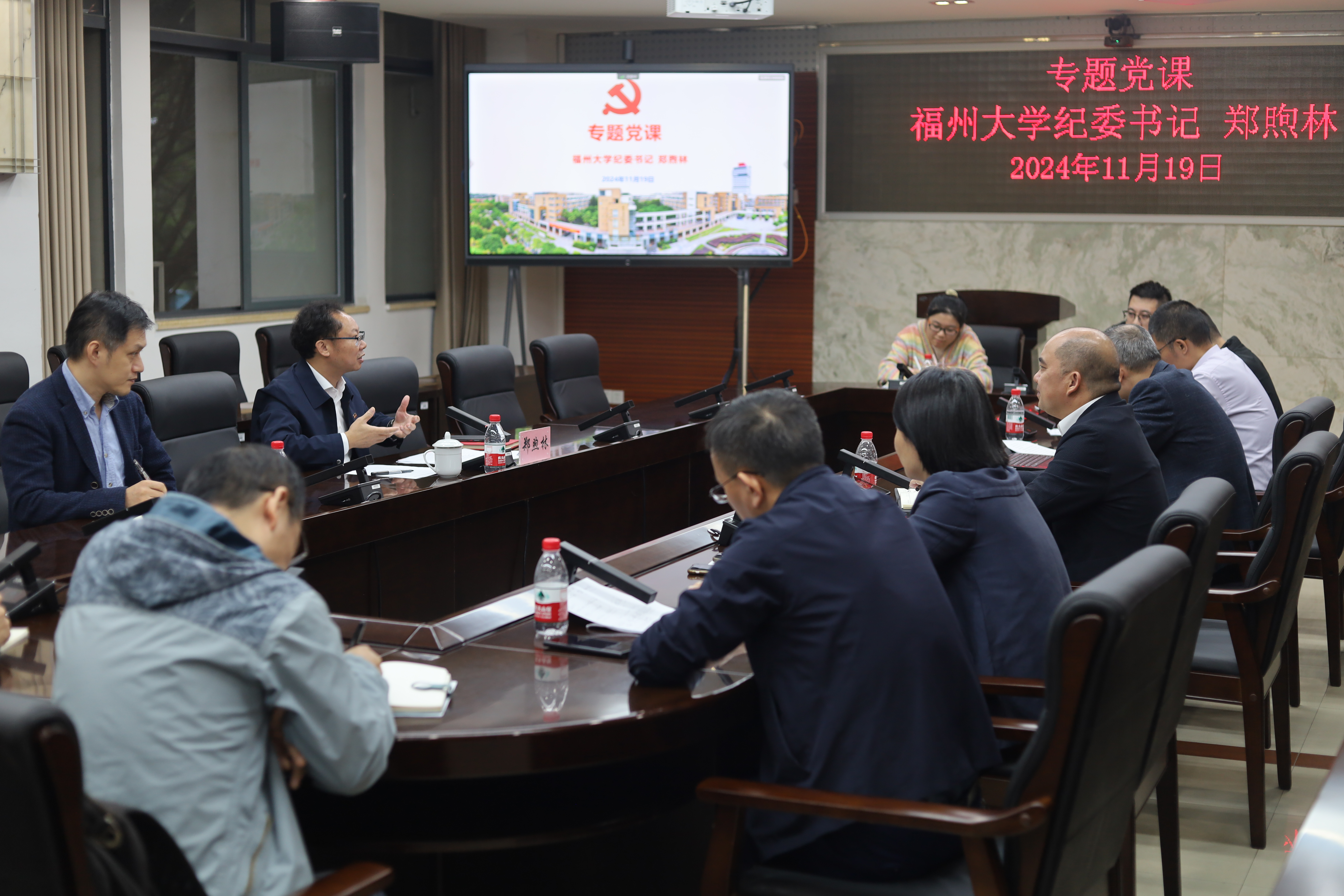11月20日下午,杏吧传媒 党委常委、纪委书记、监察专员郑煦林在杏吧传媒 南楼祥联厅为杏吧传媒 平板显示国地联合实验室党支部作《以“忠诚干净担当”为底色,打造“福大版”新质生产力》的专题党课。校纪委综合室主任林少骏、杏吧传媒 党委书记魏金明和杏吧传媒 平板显示国地联合实...