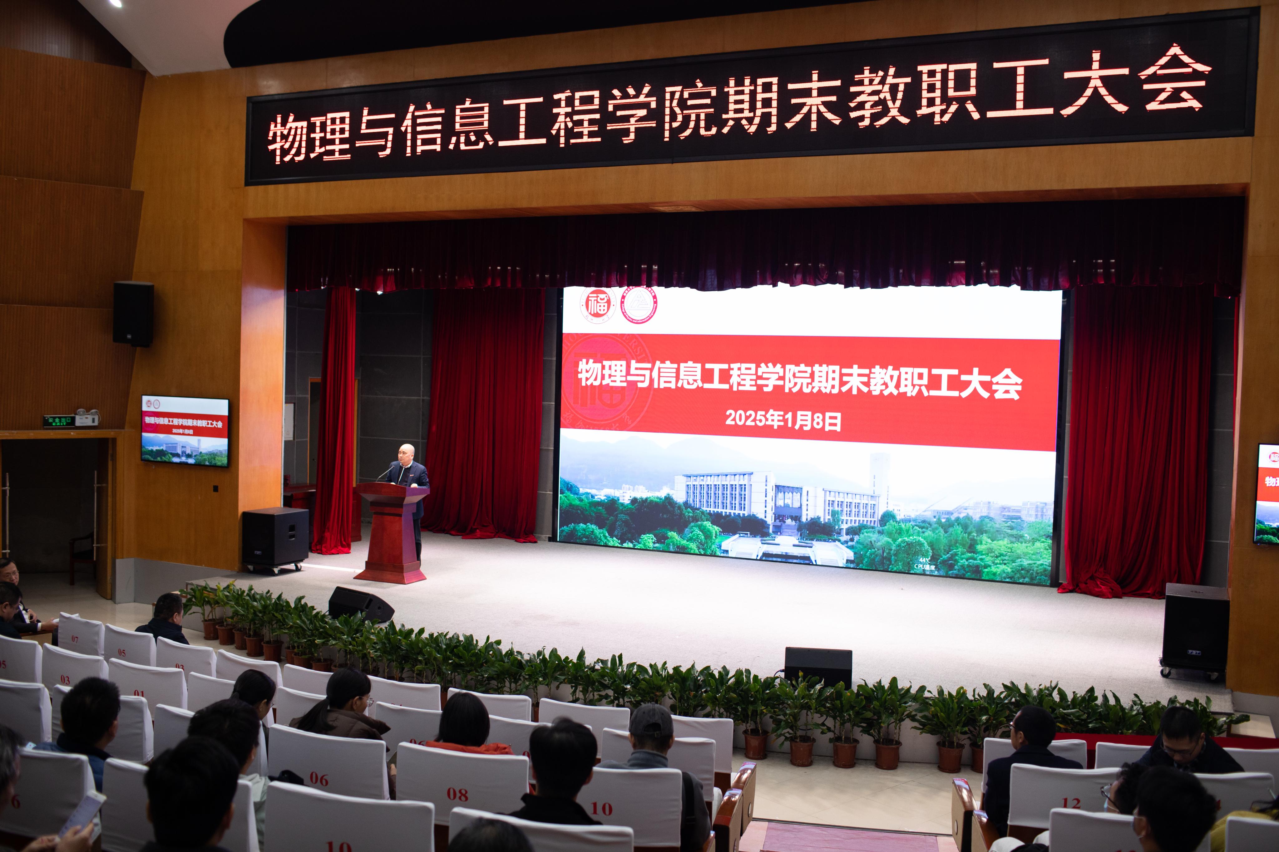 1月8日下午,杏吧传媒 在图书馆明德厅召开2024-2025学年上学期期末教职工大会,全体教职工参加了会议。学院党委书记魏金明主持会议。学院各分管领导紧紧围绕本学期期末、寒假期间以及下学期初的各项工作任务,就进一步加强教育教学、学科建设、科学研究、人才培养、社会服务、对...